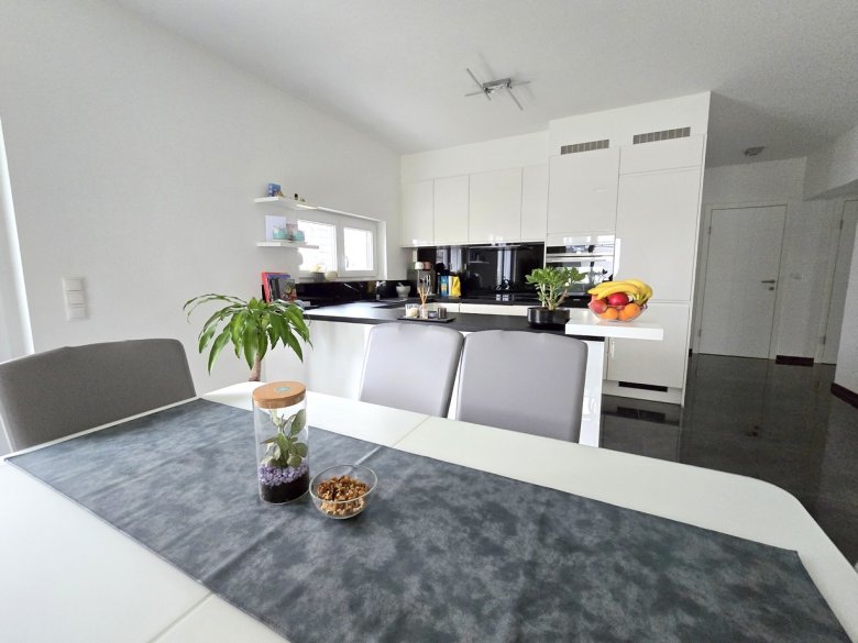 Gartenterrassen-Wohnung mit hoher Wohnqualität; 5 Autominuten / 10 Radminuten zum Murpark; 9 Autominuten / 15 Radminuten zur TU-Inffeldgasse; 14 Minuten mit der S-Bahn zum Hauptbahnhof Graz; in Raaba - wenige Meter von der Ortstafel Graz; beste Öffi-Anbindung (mehrere Busse + S-Bahn); großzügige Eckwohnung mit großen Fensterflächen; sehr guter, moderner Gesamtzustand - Erstbezug 2017; großzügiger 37 m² offener Wohn- Essbereich mit hochwertiger DAN-Küche (weiße Hochglanz-Front, Siemens-Geräte: voll integrierter Geschirrspüler hochgestellter Backofen mit Mikrowellenfunktion, Touch-Screen-Induktionsfeld, Kühlschrank mit BioFresh und Gefrierkombi, Dunstabzug, große Arbeitsfläche); und Ausgang auf den 116 m² großen Eigengarten mit Terrasse, 3 Schlafzimmer mit jeweils 15 m², 14 m² und 11 m² ; Badezimmer mit Doppelwaschbecken, Wanne, barrierefreier WalkIn-Regenwalddusche sowie Fenster ausgestattet; Toilette mit Gästewaschbecken vom Bad getrennt; geräumiger Abstellraum mit Platz für Waschmaschine, Trockner und Gefrierschrank; Diele mit Platz für Garderobe; weiße (Tischler-)Innentüren; elektrische Rolläden; teilweise mit Insektenschutz; Wasser-Entkalkungs-Anlage (Ihre Geräte danken es Ihnen...); Das Haus wurde in Ziegelmassivbauweise errichtet (auch die Innenwände sind Ziegelmassiv) und verfügt über einen hervorragenden Energiewert; kleine, überschaubare Wohnanlage, Keller-Ersatzraum; 2 Carports im Kaufpreis bereits enthalten; Die Beheizung erfolgt mittels energiesparender Luftwärmepumpe; günstige Betriebskosten (!).