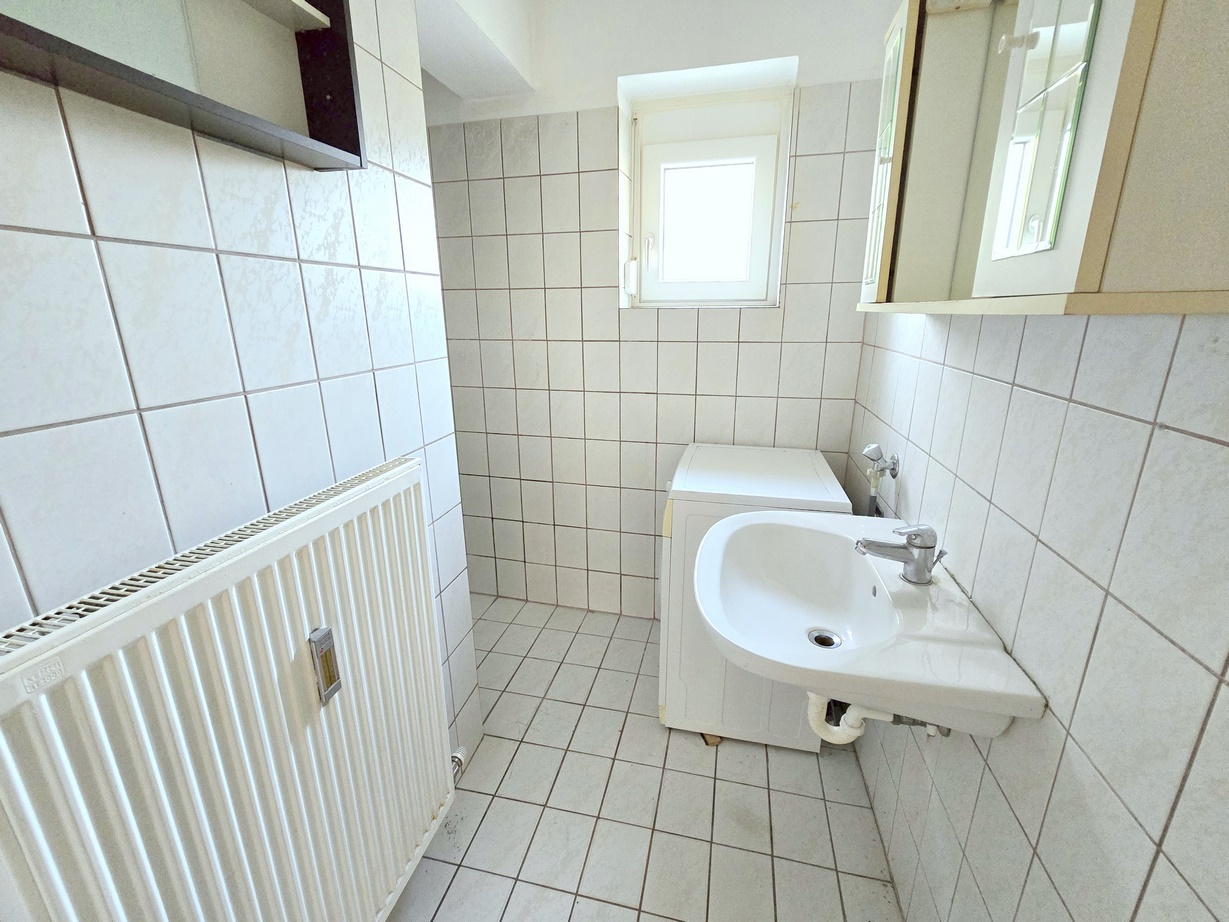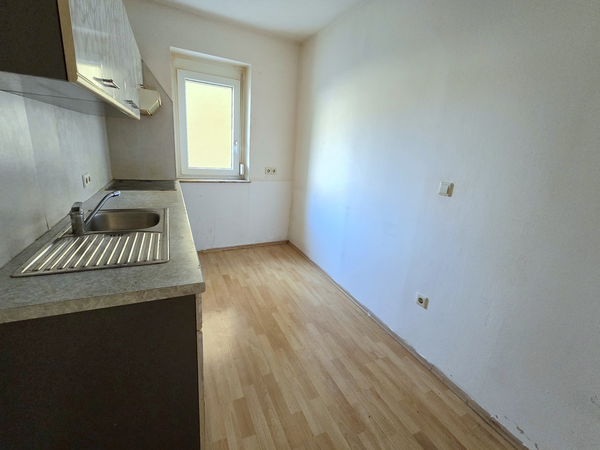 Günstige, einfache 2-Zimmer-Wohnung; zentrale Stadtlage - Seitengasse mit guter Infrastruktur und GVB -Anbindung nächst Citypark und Oeverseepark; 8 Radminuten zum Bauernmarkt am Lendplatz; 10 Radminuten zum Hauptplatz sowie zur FH-Joanneum; 12 Radminuten zur KF-Universität; durchdachte Raumeinteilung; Zimmer einzeln begehbar - daher ideale Eignung für 2er-WG; Diele mit Platz für Garderobe; abgeschlossene Küche mit älterem Küchenblock; Badezimmer mit Dusche, Fenster sowie Waschmaschinen-Anschluss ausgestattet; Toilette vom Bad getrennt; Massivparkettböden; weiße Innentüren; Fenster Kunststoff-Isolierverglasung mit Rolläden; Kellerabteil; Baujahr 1965; kein Balkon; Zum Parken stehen Ihnen Stellplätze in der umliegenden Zone ab 16,- monatlich zur Verfügung; Kaufpreis € 84.000,-- + Sanierungsdarlehen für die bereits erfolgte thermische Sanierung des Hauses (Vollwärmeschutz-Fassade + Isolierglasfenster; dzt. monatlich 120,-- Laufzeit bis 2036 - Saldo per Jänner 2026 - ca. € 16.000,--); Die Wohnung gehört aufgehübscht (reinigen, Küchenblock erneuern, Parkett schleifen, ausmalen).