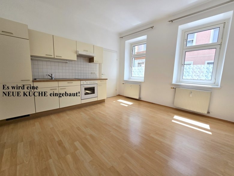Günstige Single- und Pärchenwohnung in gepflegtem Wohnhaus; Diele/Eingangsbereich, großzügige, NEUE WOHNKÜCHE mit Geschirrspüler, Ceranfeld-Herd/Backofen, Dunstabzug, Kühlschrank sowie Platz für Essbereich (bei der Küche auf dem Foto handelt es sich um die alte, bereits ausgebaute Küchenzeile); Wohnbereich + kleines Schlafzimmer; geräumiges Badezimmer - mit Dusche, Toilette und Waschmaschinen-Anschluss ausgestattet; hohe Fenster-Elemente; freier Ausblick ins Grüne - kein Gegenüber; Allgemeingarten zum Mitbenützen (keine Hundehaltung); Kellerabteil; 8 Radminuten zum Bauernmarkt am Lendplatz; 13 Radminuten zur KF-Universität sowie zur FH-Joanneum; Anbindung an das Radwegenetz; nächst Murradweg (Joggen, Skaten, Radfahren...) sowie gute GVB-Anbindung; 1. Obergeschoß; Die Vermietung erfolgt an Berufstätige oder Studenten - max. 2 Personen; Miete inklusive Betriebskosten, exkl. Fernwärme.