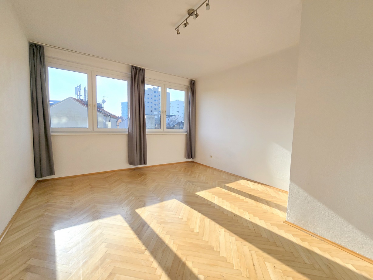 Helle, freundliche Citywohnung mit durchdachter Raumeinteilung - Zimmer einzeln begehbar - daher bei Bedarf ideale WG-Eignung (Zimmer je 18 m² und 17 m²); eingerichtete Küche mit Ceranfeld-Herd/Backofen, Kühl- Gefrierkombination, großer Arbeitsfläche sowie Platz für Essbereich; Badezimmer mit Dusche und Waschmaschinen-Anschluss; Toilette vom Bad getrennt; Diele mit Platz für Garderobe; 2 Südloggien mit jeweils 5 m²; allgemeine Dachterrasse mit Blick über die ganze Stadt zum Mitbenützen; Kellerabteil; Fahradabstellplatz; weiße Innentüren; Massivparkettböden; Fenster Kunststoff-Isolierverlasung mit Rolläden; Lift; zentrale Seitengasse mit guter Infrastruktur und GVB-Anbindung; Zum Parken stehen Ihnen Stellplätze in der grünen (günstigen) Kurzparkzone ab 12,-- monatlich zur Verfügung; nächst Citypark und Oeverseepark; 6 Radminuten zum Bauernmarkt am Lendplatz; 8 Radminuten zum Hauptplatz sowie zur FH-Joanneum; 14 Radminuten zur KF-Universität.