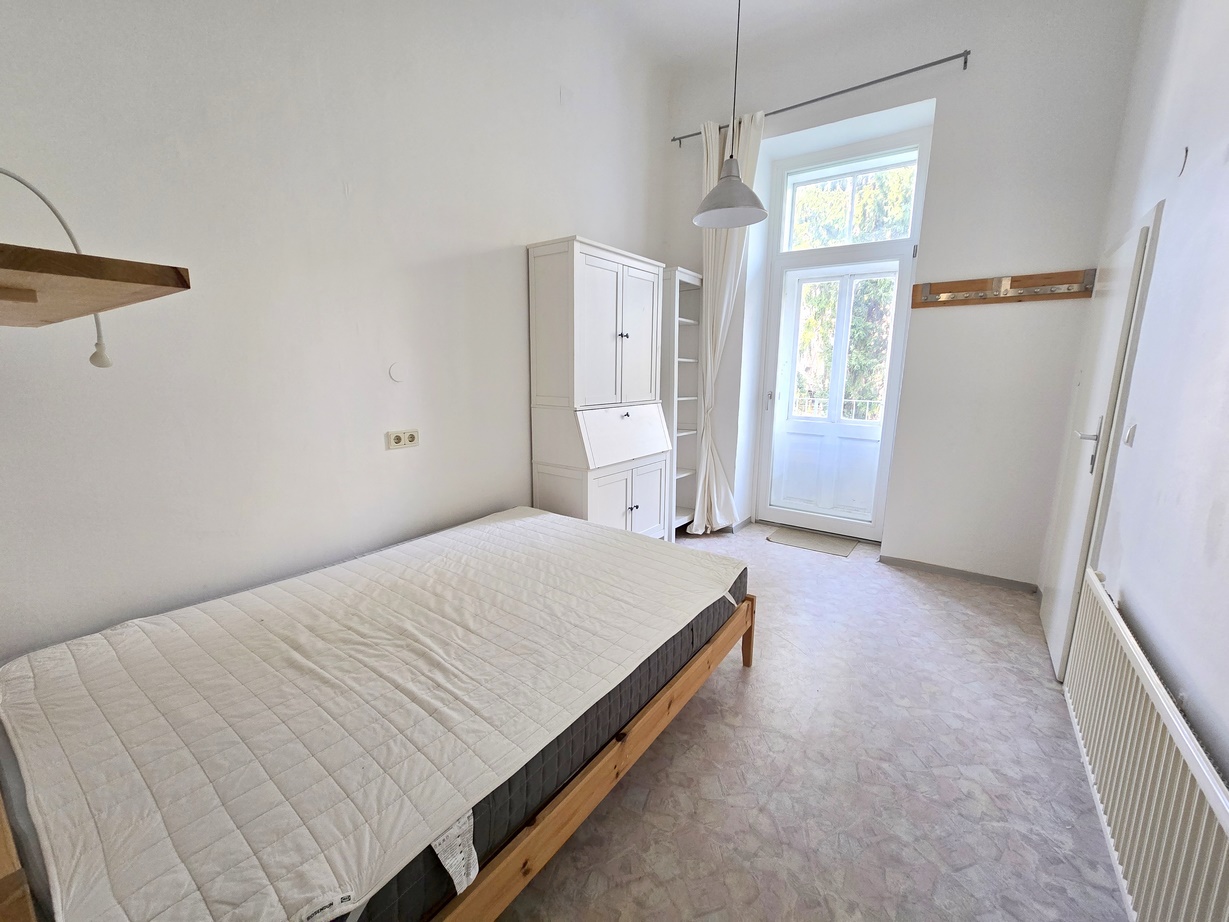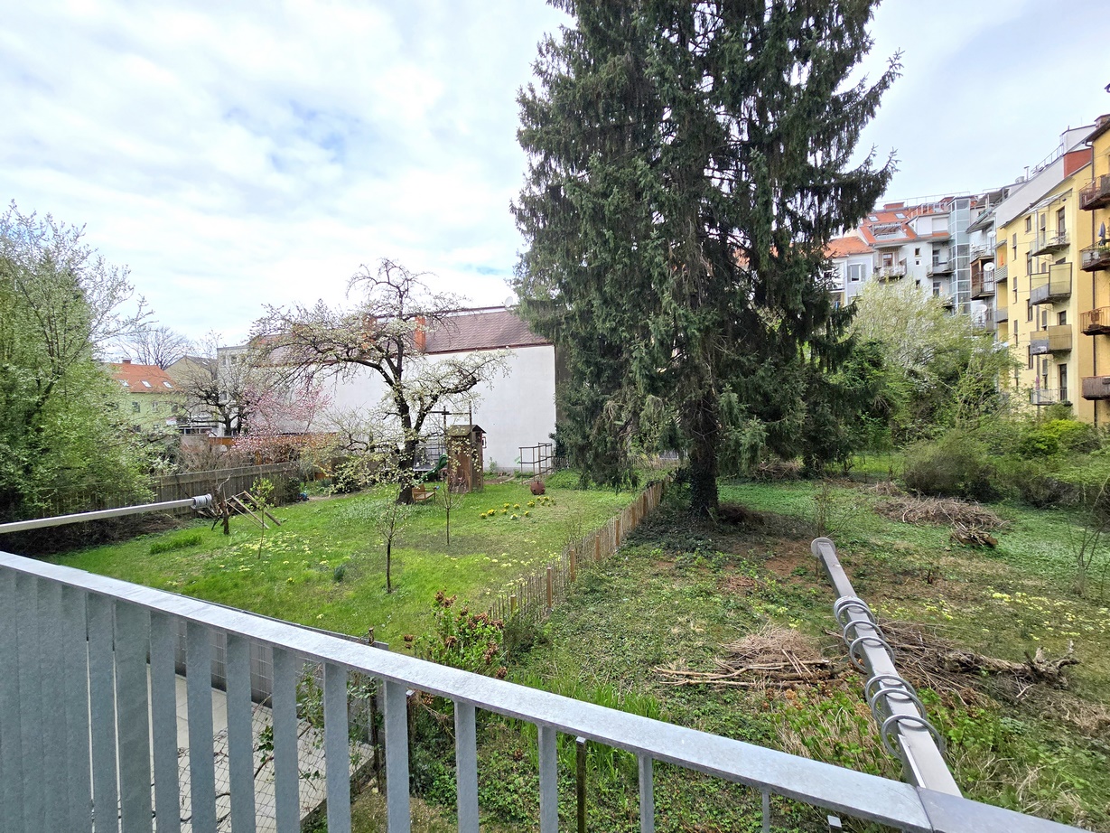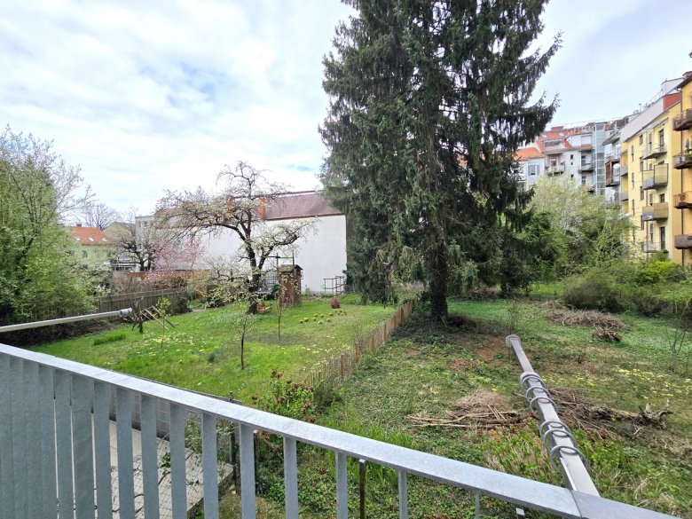 Charmante Altbau Single- und Pärchenwohnung mit toller Raumhöhe; 2 Gehminuten zum Bauernmarkt am Lendplatz; 7 Radmin. zum Hauptplatz; 10 Radmin. zur FH-Joanneum; 14 Radmin. zur KF-Universität; zentrale City-Lage direkt am Murradweg (Joggen, Skaten, Radfahren...); 23 m² Wohn- Essbereich mit hohen Fenster-Elementen/Rolläden; einfach Küche mit Ceranfeld, Kühlschrank, Waschmaschine und Mikrowelle ausgestattet; Schlafzimmer innenhofseitig und ruhig mit Ausgang auf den idyllischen Balkon mit Ausblick ins Grüne; Badezimmer mit Dusche und Fenster; Toilette vom Bad getrennt; Massivparkettboden; weiße Innentüren; Kellerabteil; Zum Parken stehen Ihnen Stellplätze in der umliegenden Zone ab 16,- monatlich zur Verfügung; Parterre; Wohn- und Schlafzimmer übernehmen Sie auf Wunsch wahlweise leer oder ohne Aufpreis möbliert (siehe Fotos); Kaufpreis + rd. € 13.000,- Darlehen für die bereits durchgeführte Sanierung der Hoffassade + Balkonvergrößerung (wird mit der monatlichen Vorschreibung mit dzt. € 95,- monatlich eingehoben).